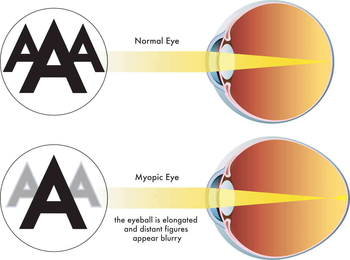 Nearsightedness, or myopia, is primarily caused by a refractive error where the eyeball is slightly too long from front to back, or the cornea is too curved. This structural issue causes light entering the eye to focus in front of the retina instead of directly on it, resulting in blurred distance vision. While genetics play a significant role—with a strong likelihood of inheritance if one or both parents are myopic—environmental factors are also influential. Extensive "near work" such as prolonged reading or using digital devices, especially during childhood, is associated with its development and progression. The condition typically emerges in school-aged children and often stabilizes in early adulthood, though it can continue to change.